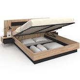 Alliez praticité et design grâce à ce lit coffre SANTA 160 x 200 cm avec chevets intégrés, au coloris bois et noir. Grâce à son coloris bois et noir, votre lit se mariera parfaitement avec votre décoration intérieure, tout en donnant un peu de chaleur à votre intérieur. Très pratique, ce lit adulte