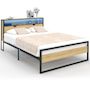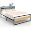 Lit double DETROIT LED intégrés dans la tête de lit et sommier 140 x 190 cm effet bois et métal noir design industriel