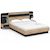 Lit double NATHAN 140 x 190 cm avec tête de lit, chevets suspendus, étagère, LED et sommier bois et noir