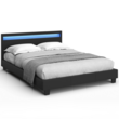 Lit double NEO avec tête de lit LED intégrées et sommier 140 x 190 cm PVC noir