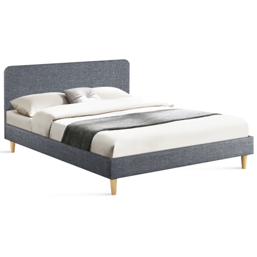 Lit double scandinave BALTA avec tête de lit et sommier 140 x 190 cm tissu gris anthracite