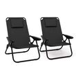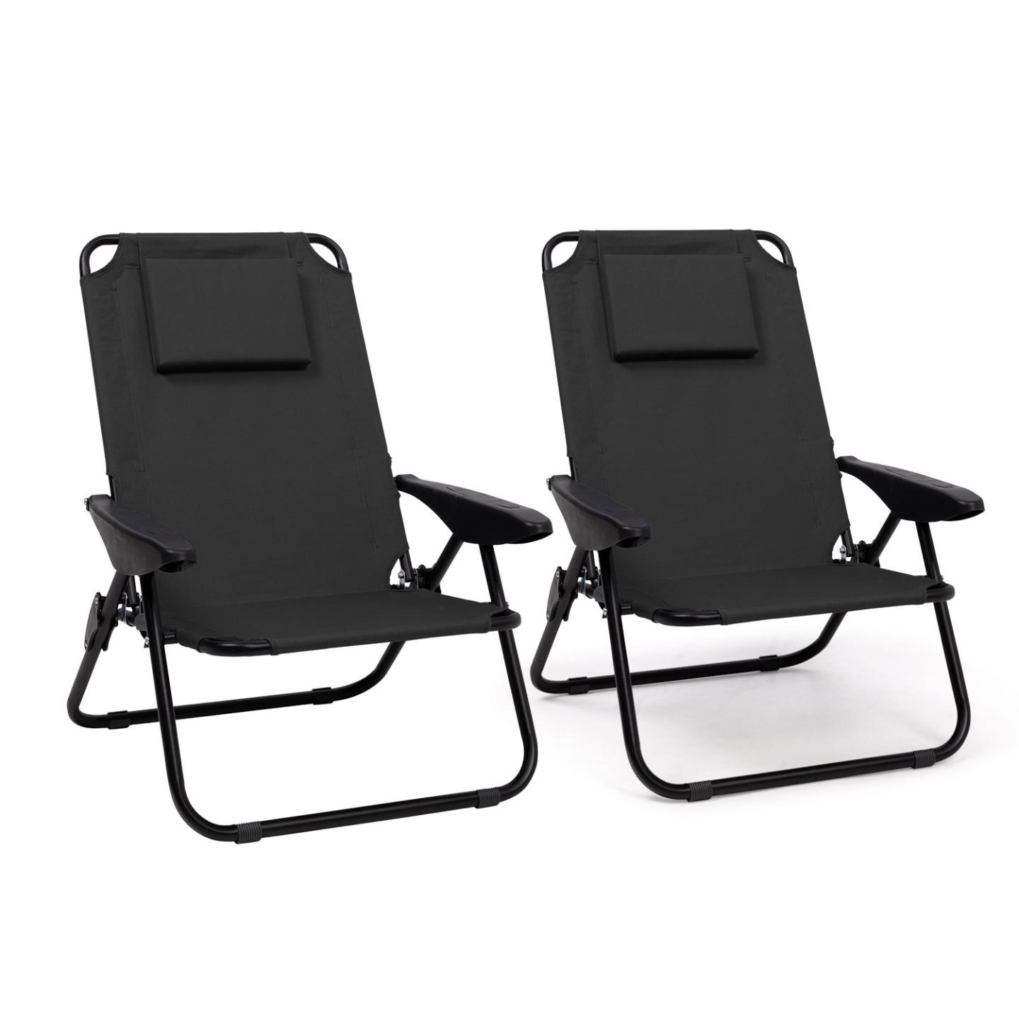 Lot de 2 chaises de plage pliantes - fauteuils de jardin inclinables sac à dos noir et toile noire