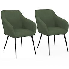 En savoir +À la recherche de nouvelles chaises confortables pour aménager votre intérieur ? Offrez-vous ce lot de 2 jolis fauteuils de table JANY en velours côtelé kaki afin de l'installer dans votre salon, cuisine, bureau ou chambre d'amis. Grâce à son revêtement en velours côtelé kaki ultra tendance, ce fauteuil de table JANY vous assure un confort optimal. L'assise moelleuse et large de ces chaises velours, vous garantira un confort absolu pour tous vos repas et vous permettra de profiter pleinement de ces moments de convivialité.Doté d'accoudoirs, vous vous sentirez complètement enveloppé en vous installant à l'intérieur, idéal pour vos repas en famille ou pour travailler par exemple. Pratiques et élégants, ses pieds fuselés en métal noir vous assurent une parfaite stabilité et de la robustesse, tout en soulignant le look moderne et design de ces chaises. Ces 2 chaises au design élégant et arrondi apporteront une touche de raffinement à votre intérieur. Leur velours côtelé moderne et tendance ainsi que leur couleur kaki, s'accorderont à votre décoration et trouveront leur place dans la pièce de votre choix. En bout de table, dans votre salon, ou encore dissociés dans des pièces différentes, ces 2 fauteuils avec accoudoirs réhausseront avec élégance votre décoration intérieure !Laissez-vous séduire par ce lot de 2 chaises de salle à manger JANY en velours côtelé kaki alliant confort et design à prix mini ! Dimensions du lot de 2 chaises de table JANY en velours côteléDimensions globales : Longueur 55 cm x largeur 63 cm x Hauteur 80 cmDimensions de l'assise : L. 37 x l. 41 x H. 45 cmPieds en métal noirRevêtement en velours côteléColoris : kakiVendues en lot de 2À monter soi-mêmeRetrouvez l'ensemble de nos chaises avec accoudoirs sur notre boutique en ligne.