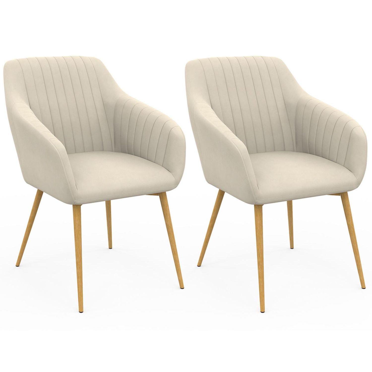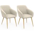 Lot de 2 chaises de salle à manger, fauteuils de table JANY matelassées velours beige pieds effet bois