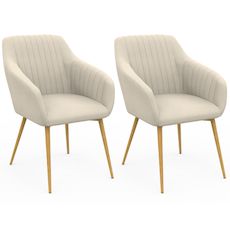 Vous recherchez des fauteuils modernes et élégants pour meubler votre salle à manger ? Avec leur design arrondi et leur revêtement en velours matelassé, les chaises avec accoudoirs JANY beige apporteront une ambiance cosy et chaleureuse à votre intérieur.Leur assise arrondie en velours, large et rembourrée, vous garantira un confort absolu pour tous vos repas et vous permettra de profiter pleinement de ces moments de convivialité. Leur dossier est doté de grands accoudoirs et apporte un soutien supplémentaire à votre colonne vertébrale. Avec leur dossier et leur accoudoirs matelassés, les chaises de salle à manger JANY apporteront confort et style à votre salle à manger. Elles trouveront ainsi facilement leur place dans votre intérieur ! En bout de table, dans votre salon, ou encore dissociés dans des pièces différentes, ces fauteuils de table réhausseront avec élégance votre décoration intérieure !Leurs 4 pieds en métal effet bois leur assurent robustesse et stabilité, tout en apportant un côté chaleureux au look résolument moderne et design de ces chaises de salle à manger.Il ne vous reste plus qu'à vous installer confortablement autour de la table !Dimensions du lot de 2 chaises de table JANY avec accoudoirs velours beigeDimensions globales : Longueur 55 cm x largeur 63 cm x Hauteur 80 cmDimensions de l'assise : L. 37 x l. 41 x H. 45 cmPieds en métal effet boisRevêtement en velours Coloris : Crème et boisVendues en lot de 2À monter soi-mêmeRetrouvez l'ensemble de nos chaises de cuisine sur notre boutique en ligne !