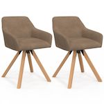 Lot de 2 chaises pivotantes de salle à manger, fauteuils de table JANY en velours côtelé taupe