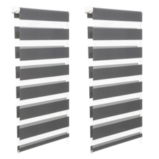 Descriptif du lot de 2 stores zébrés l.55 x H. max 170 CM grisLaissez-vous séduire par le lot de deux stores enrouleurs zébrés jour nuit 55 x 170 cm gris ! Avec son design zébré élégant, vous serez protégé contre le soleil et les regards indiscrets. Ces stores s'adapteront idéalement à tout type d'intérieur et décoreront vos fenêtres !Son design zébré vous permet de superposer les bandes (deux à deux) pour avoir plus de luminosité ou d'intercaler les bandes pour avoir moins de luminosité et un effet occultant maximal. Les bandes sont ainsi alternativement opaques et transparentes : taux d'ombrage de 50 à 60% (intercaler ou superposer 2 bandes selon la luminosité).Pratique et ergonomique, chaque store est composé d'un enrouleur en plastique, d'une barre (partie basse) en acier et d'une toile en polyester. À l'aide du mécanisme à chaînette, vous pourrez régler manuellement la hauteur et ajuster la lumière ambiante selon vos besoins ! Pour son montage, c'est simple ! Choisissez de le fixer au mur ou suspendez-le à la fenêtre à l'aide de 2 crochets (accessoires fournis). L'épaisseur maximale de la fenêtre ne doit pas dépasser 2 cm. Dimensions d'un store enrouleur zébré gris- Largeur de la toile : 51 CM- Largeur de la toile avec support : 55 CM- Hauteur maximum : 170 CM- Enrouleur en plastique- Barre du bas en acier- Toile en polyester- Hauteur réglable manuellement- Montage facile