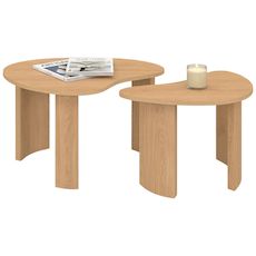 Conçues en MDF mélaminé, elles offrent une grande solidité et un entretien facile au quotidien. Leur finition bois clair évoque une ambiance douce et naturelle, idéale pour créer un espace convivial et harmonieux.Grâce à leur fonction gigogne, les deux tables se superposent ou se déploient selon vos