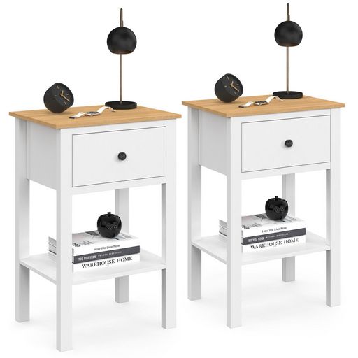 Lot de 2 tables de chevet ACHILLE 1 tiroir et 1 tablette blanc et plateau bois