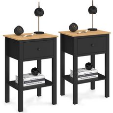 Lot de 2 tables de chevet ACHILLE 1 tiroir et 1 tablette noir et bois