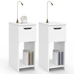 Laissez-vous séduire par ces tables de chevet bois blanc qui s'adapteront facilement avec votre décoration intérieure ! Idéal pour apporter une touche contemporaine à votre chambre à coucher, ce lot de 2 tables de nuit ANOUK allie style et praticité.Rangez vos affaires en toute discrétion grâce à leur tiroir et utilisez la niche ouverte pour vos livres par exemple. Cet ensemble de 2 tables de chevet vous offre une capacité de rangement optimal, agrémentez-les d'une jolie lampe pour mettre en valeur tous vos objets déco ! La couleur blanche apporte de l'élégance et de la modernité à votre pièce en un tour de main. Ces lignes simples et épurées se marieront parfaitement autour de votre lit. Meublez avec goût votre chambre à coucher grâce à ce joli lot de 2 tables de chevet blanc fonctionnel et au design intemporel ! Dimensions du lot de 2 tables de chevet ANOUK blancDimensions globales : Longueur 20 cm x largeur 30 cm x Hauteur 50 cmDimensions intérieures du tiroir : L. 13,5 x l. 23,5 x H. 10 cmDimensions façade du tiroir : L. 20 x H. 14,5 cmDimensions de la niche : L. 17 x l. 27 x H. 27,8 cmHauteur de la niche par rapport au sol : 3 cmMatériaux : panneaux de particules de bois (PB)Coloris : blancÀ monter soi-mêmeDécouvrez l'ensemble de notre collection contemporaine sur notre boutique en ligne !
