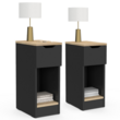 Lot de 2 tables de chevet ANOUK 1 tiroir avec niche noir et bois