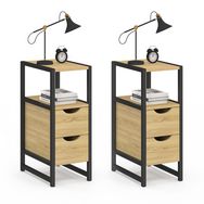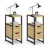 Lot de 2 tables de chevet DETROIT 2 tiroirs et 1 niche bois et métal noir design industriel