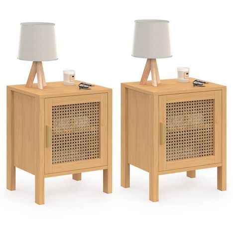 Lot de 2 tables de chevet EDHEN 1 porte cannage et bois