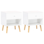 Lot de 2 tables de chevet EMMIE scandinaves 1 tiroir avec niche blanc