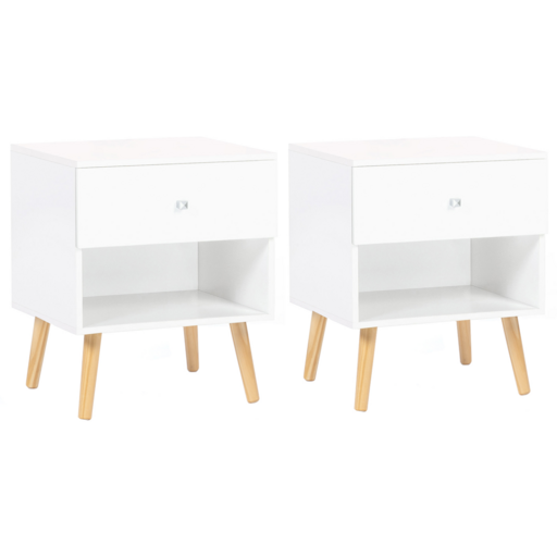Apportez un peu d'esprit nordique dans votre chambre à coucher grâce au lot de deux chevets EMMIE ! Ultra fonctionnelle, la structure du chevet vous permet d'occulter certaines de vos affaires tout en gardant celles de votre choix apparentes. En effet, le tiroir de L.40 x l.34 x H.14 CM vous permet de ranger votre pilulier, votre télécommande ou vos mouchoirs. Vous gardez ainsi une chambre rangée et organisée en toutes circonstances.Outre cet aspect pratique, le design du chevet vous permet de vous servir de la niche inférieure comme support de décoration. Servez-vous de ses 14.5 CM de hauteur pour y déposer une plante comme votre livre de chevet ou un objet de décoration, le blanc de la niche s'y associera parfaitement.Utilisez le large plateau de vos chevets pour y poser une lampe ou votre tasse de thé ! De plus, les lignes épurées de vos chevets apporteront l'esprit cocooning propre aux pays nordiques. Fonctionnels et élégants, les chevets EMMIE blancs s'accordent parfaitement avec votre décoration intérieure.N'hésitez plus et craquez pour ces chevets qui vous assurent une chambre ordonnée et un style infaillible ! Dimensions du lot de 2 tables de chevet EMMIE- Dimensions hors tout : Longueur 40 CM x largeur 34 CM x Hauteur 50 CM- Dimensions du tiroir : L.40 x l.34 x H.14 CM- Dimensions de la niche : L.37 x l.34 x H.14,5 CM - Matériaux : PB 15 MM- Pieds en bois - Coloris : blanc et bois- À monter soi-mêmeCe lot de 2 tables de chevet existe dans un autre coloris et dans un autre design : - Lot de 2 tables de chevet EMMIE 1 tiroir scandinaves bois et noir- Lot de 2 tables de chevet EMMIE 2 tiroirs scandinaves bois et blancRetrouvez l'ensemble de notre collection EMMIE ainsi que nos tables de chevet sur notre boutique en ligne !
