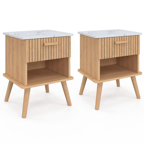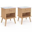 Lot de 2 tables de chevet JULIETTE plateau effet marbre 1 tiroir avec niche lattes tasseau bois
