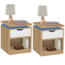Lot de 2 tables de chevet LUNA à LEDS 1 tiroir avec niche hêtre et blanc