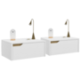 Lot de 2 tables de chevet murales HELSINKI scandinaves 1 tiroir étagère suspendue blanc