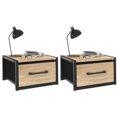 Ce lot de 2 tables de chevet murales UTAH, au style industriel, s'accordera parfaitement à la décoration de votre chambre à coucher grâce à son design élégant et moderne. Le mélange du bois et du métal noir habillera votre intérieur sans aucun doute et deviendra un élément de décoration à part entiè