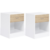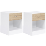 Lot de 2 tables de chevet OLGA 1 tiroir avec niche bois blanc et façon hêtre