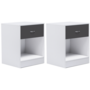 Lot de 2 tables de chevet OLGA 1 tiroir avec niche bois blanc et tiroir gris