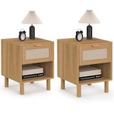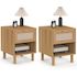 Lot de 2 tables de chevet ROBIN 1 tiroir avec niche bois et effet lin