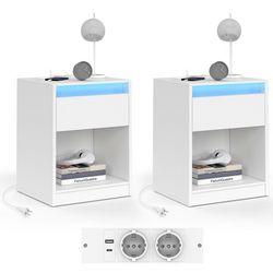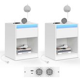 Lot de 2 tables de chevet TED à LEDS avec station de recharge 1 tiroir et niche