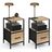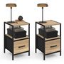 Besoin d'un lot de 2 tables de chevet pour aménager votre chambre à coucher ? Pensez aux 2 tables de chevet UTAH dotées d'un tiroir bi-matière et d'une tablette de rangement.Ultra pratique, chacune des tables de chevet dispose d'un bac en tissu avec une façade en effet bois ainsi qu'une tablette de rangement pour stocker vos affaires. Les 2 grands tiroirs fermés permettront d'organiser votre rangement et de cacher vos affaires personnelles en toute discrétion, pour une chambre dégagée et ordonnée en toutes circonstances.De plus, utilisez leur niche et leurs plateaux pour disposer votre décoration : bougie, cadre photo, réveil, lampe de chevet...Grâce à leur structure métallique, leurs 4 pieds en métal, leur bac en tissu et leurs panneaux en particules de bois de 1,5 cm d'épaisseur, ces tables de chevet vous assureront une stabilité parfaite.Ce lot de 2 tables de chevet trouvera facilement sa place dans votre chambre à coucher, tout en lui apportant du style grâce à son look très industriel. Multifonction, les tables de chevet 30 x 30 cm peuvent tout à fait servir de meubles d'appoint dans une autre pièce, comme un bureau ou un salon par exemple.Pour une totale harmonie dans votre chambre à coucher, optez pour une association commode et chiffonnier UTAH pour un design assuré ! Dimensions du lot de 2 tables de chevet UTAHDimensions globales : Longueur 30 cm x largeur 30 cm x Hauteur 50 cmDimensions intérieures d'un tiroir : L. 26 x l. 29 x H. 18.5 cmDimensions façade d'un tiroir : L. 26.5 x H. 19 cmDimensions étagère : L. 27 l. 30 x H. 18.5 cmDimensions des poignées : L. 10 x l. 2 cmHauteur des pieds : 7 cmTiroirs en fibre non tissée et façades en particules de bois (PB)Coloris : Bois et noirÀ monter soi-mêmeRetrouvez toute la collection de meubles industriels sur notre boutique en ligne !