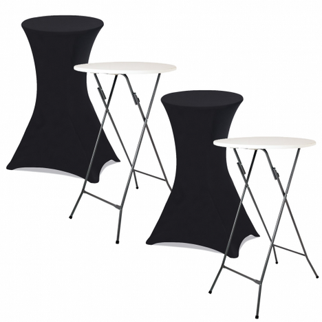 Lors de vos événements, recevez vos invités en toute simplicité grâce à notre lot de 2 tables hautes pliantes de bar façon mange debout et ses 2 housses noires !
