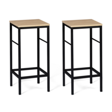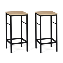 Vous recherchez des tabourets au style industriel très tendance ? Alors profitez de ce joli lot très fonctionnel à petit prix ! Ces tabourets s'associeront facilement à la décoration de votre pièce, autour d'un îlot central, ou d'une table haute. Très pratiques, vous pourrez ranger les tabourets sous la table pour économiser de l'espace.Conçus avec une structure en métal noir et une assise en panneaux de particules de bois (épaisseur 1,5 cm) pour un usage au quotidien, les tabourets DETROIT sont robustes et stables, ils ne craignent pas les taches.Équipés de repose-pieds en métal, ces tabourets seront allier confort et design. Leur finition en métal noir apportera une touche industrielle rétro tendance !Avec leur look industriel bi-matière, les 2 tabourets DETROIT en métal noir se marieront très facilement avec d'autres styles : vous pourrez les associer avec notre table de bar DETROIT 2 à 4 personnes pour donner du caractère à votre espace de vie !Osez mélanger le style industriel à une décoration plus altique ! Dimensions des tabourets de bar DETROIT design industrielDimensions globales : Longueur 32 cm x largeur 32 cm x Hauteur 67 cmDimensions de l'assise : L.32 x l.32 cmHauteur du repose-pied : 15,5 cmMatériaux : panneaux de particules de bois (PB) épaisseur 1,5 cm et tubes en métal 2 x 2 cm À monter soi-mêmeVendu en lot de 2Ce lot de 2 tabourets est également disponible avec la table haute de bar :- Table haute de bar DETROIT et 2 tabourets design industrielExiste également en lot de 4 tabourets.Découvrez l'ensemble de notre collection industrielle sur notre boutique en ligne !