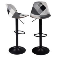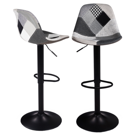 Laissez-vous tenter par ces 2 tabourets de bar KARL au design patchworks et apportez une ambiance chaleureuse et contemporaine à votre intérieur en un tour de main ! Chaque chaise haute de bar est fabriquée avec un revêtement en polyester et un pied en métal noir. Très stable avec leur socle rond de 39 cm, chaque siège de bar possède un repose-pieds en métal noir large pour garantir un maximum de confort. Pratiques, ils pivotent à 360 degrés. Son assise rembourrée aux motifs patchworks noirs, gris et blancs et son pied au design noir ultra-tendances apporteront une touche déco très chic à votre pièce à vivre. Les assises des chaises hautes de bar sont réglables en hauteur de 57 à 79 cm grâce à leur vérin à gaz, elles s'adaptent à tous les plans de travail, bars, îlots et tables hautes. Alors n'hésitez plus et commandez votre lot de 2 tabourets de bar tendance au design patchworks pour offrir un look moderne et élégant à votre intérieur !Dimensions des tabourets de bar KARLDimensions totales : Longueur 39 cm x largeur 39 cm x Hauteur 104 cm (dossier compris)Dimensions de l'assise : L. 38 x pr. 32 x H. 25 cmHauteur de l'assise réglable : 57 à 79 cmMatériaux : revêtement en polyester, pied en métalColoris : patchworks noirs gris et blancs, pied noirVendu en lot de 2 tabouretsÀ monter soi-mêmeRetrouvez les autres coloris disponibles sur notre boutique en ligne :- Lot de 2 tabourets de bar KARL design blanc- Lot de 2 tabourets de bar KARL design gris- Lot de 2 tabourets de bar KARL design jaune- Lot de 2 tabourets de bar KARL design rouge- Lot de 2 tabourets de bar KARL design bleu canard- Lot de 2 tabourets de bar KARL design noir- Lot de 2 tabourets de bar KARL design noir pied noir- Lot de 2 tabourets de bar KARL design patchworks marron, gris et beiges pied noir