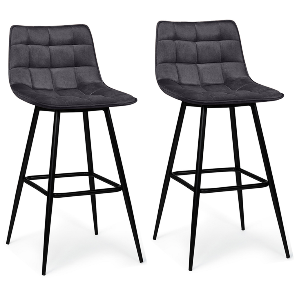 Lot de 2 tabourets de bar MADY en velours gris foncé