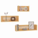 Lot de 3 étagères murales EDHEN bois et cannage 60/45/30 cm