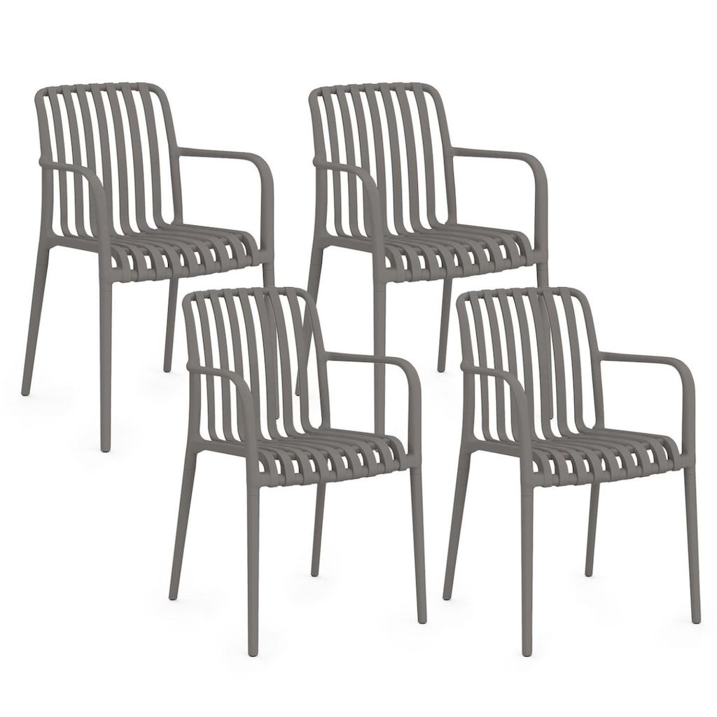 Lot de 4 chaises de jardin empilables BILBAO en polypropylène gris anthracite