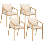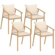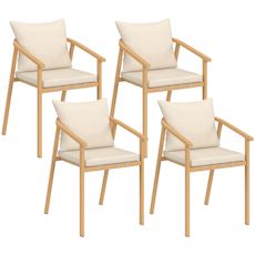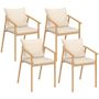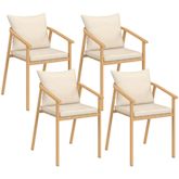 Vous allez passer un été confortable et ensoleillé sur votre terrasse grâce à ce lot de 4 chaises de jardin MALTA en métal effet bois et coussins beige ! Profitez du confort de l'assise pour apprécier de bons repas autour de votre table de jardin, lire un livre ou tout simplement prendre un apéritif entre amis. Avec son look bicolore et bi-matière en métal effet bois et lanières beige, ce lot de 4 chaises de jardin apportera design et esthétisme à votre extérieur ! Idéalement pensées pour s'installer autour d'une table, elles peuvent également se coupler avec tout autre modèle de salon de jardin !Fabriquées avec des matériaux de qualité, les chaises avec accoudoirs MALTA vous garantissent stabilité, robustesse et résistance au soleil ainsi qu'aux intempéries ! Vous pourrez utiliser les chaises de jardin aussi bien en intérieur qu'en extérieur, lorsque vous avez besoin d'assises supplémentaires lors de grands événements à domicile. Les matériaux utilisés sont idéaux pour un usage en extérieur et ne nécessitent presque aucun entretien !Grâce à leur assise large et leur dossier incurvé, vous serez confortablement installé pour profiter de moments ensoleillés avec vos amis ou votre famille. Dimensions des chaises de jardin MALTA Dimensions globales : Longueur 51 cm x largeur 63 cm x Hauteur 73 cmDimensions de l'assise : L. 45 x l. 43 x H. 42,5 - 46 cmDimensions du dossier : L. 44 x H. 28 cm Matériaux : Structure en acier, coussins en polyesterColoris : Bois et beigeÀ monter soi-mêmeDécouvrez également tous nos salons de jardin sur notre boutique en ligne !