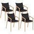 Lot de 4 chaises de jardin MALTA structure en métal effet bois, lanières et coussins noirs