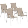 Lot de 4 chaises de jardin NOUMEA métal et textilène empilables blanc et bois