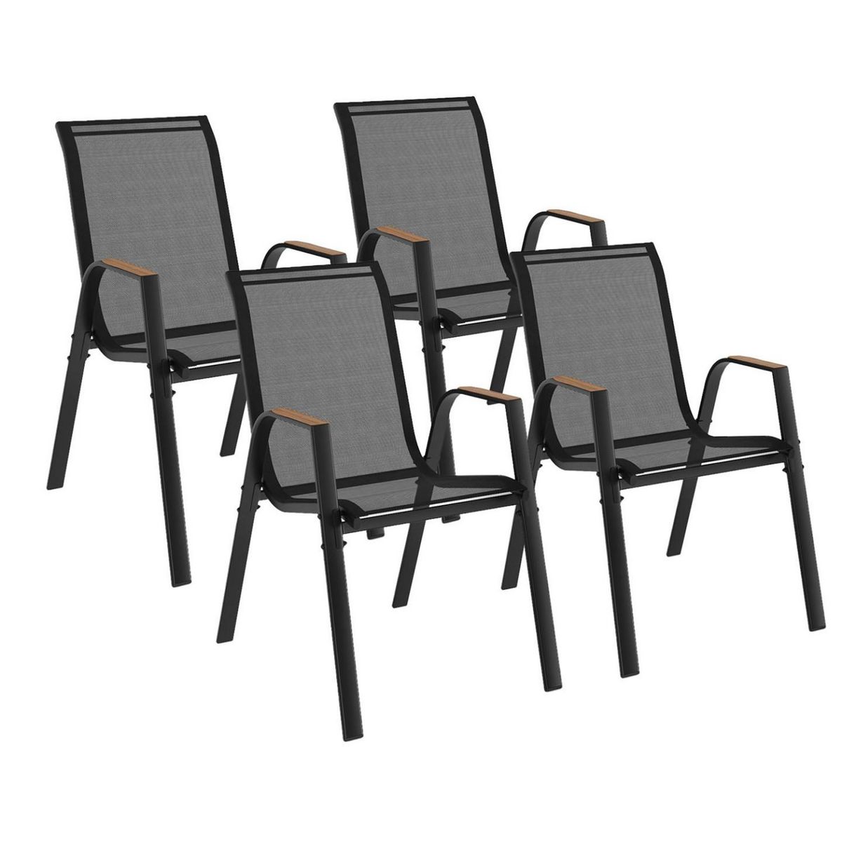 Lot de 4 chaises de jardin NOUMEA métal et textilène empilables noir et bois