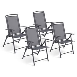 Lot de 4 chaises de jardin pliantes avec accoudoirs ALGHERO métal et textilène gris anthracite