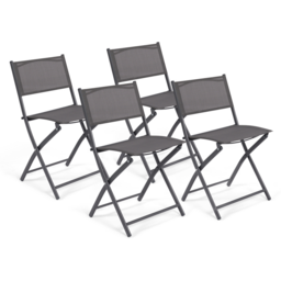 Lot de 4 chaises de jardin pliantes BASTIA métal et textilène gris anthracite