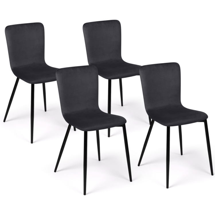 Si vous êtes à la recherche de nouvelles chaises inédites pour votre salle à manger, laissez-vous séduire par notre lot de 4 chaises MACHA en velours gris foncé.Leur design moderne et vintage associé à leur coloris gris foncé intemporel apportera une touche de sophistication à votre décoration et s'adaptera facilement à tous les styles d'intérieurs !Ces chaises élégantes sont dotées d'une assise en velours qui leur offre un aspect cossu tout en vous garantissant un confort optimal pour partager de bons repas en famille ou entre amis.Vous pouvez aussi les dissocier pour donner du style à votre chambre en les disposant devant une coiffeuse ou un bureau !Leurs pieds fins en métal noir mettent en valeur les lignes épurées de ces chaises et leur assurent stabilité et robustesse !Des chaises tendance très chic à utiliser sans modération !Dimensions des chaises MACHA en velours grisDimensions globales : Longueur 44 cm x largeur 55 cm x Hauteur 85 cmDimensions de l'assise : L.44 x l. 36 x H. 46 cmHauteur du dossier : 35 cmMatériaux : assise en velours et pieds en métalColoris : gris foncéVendues en lot de 4 chaisesÀ monter soi-mêmeRetrouvez l'ensemble de nos chaises de salle à manger ainsi que notre collection de meubles modernes sur notre boutique en ligne !