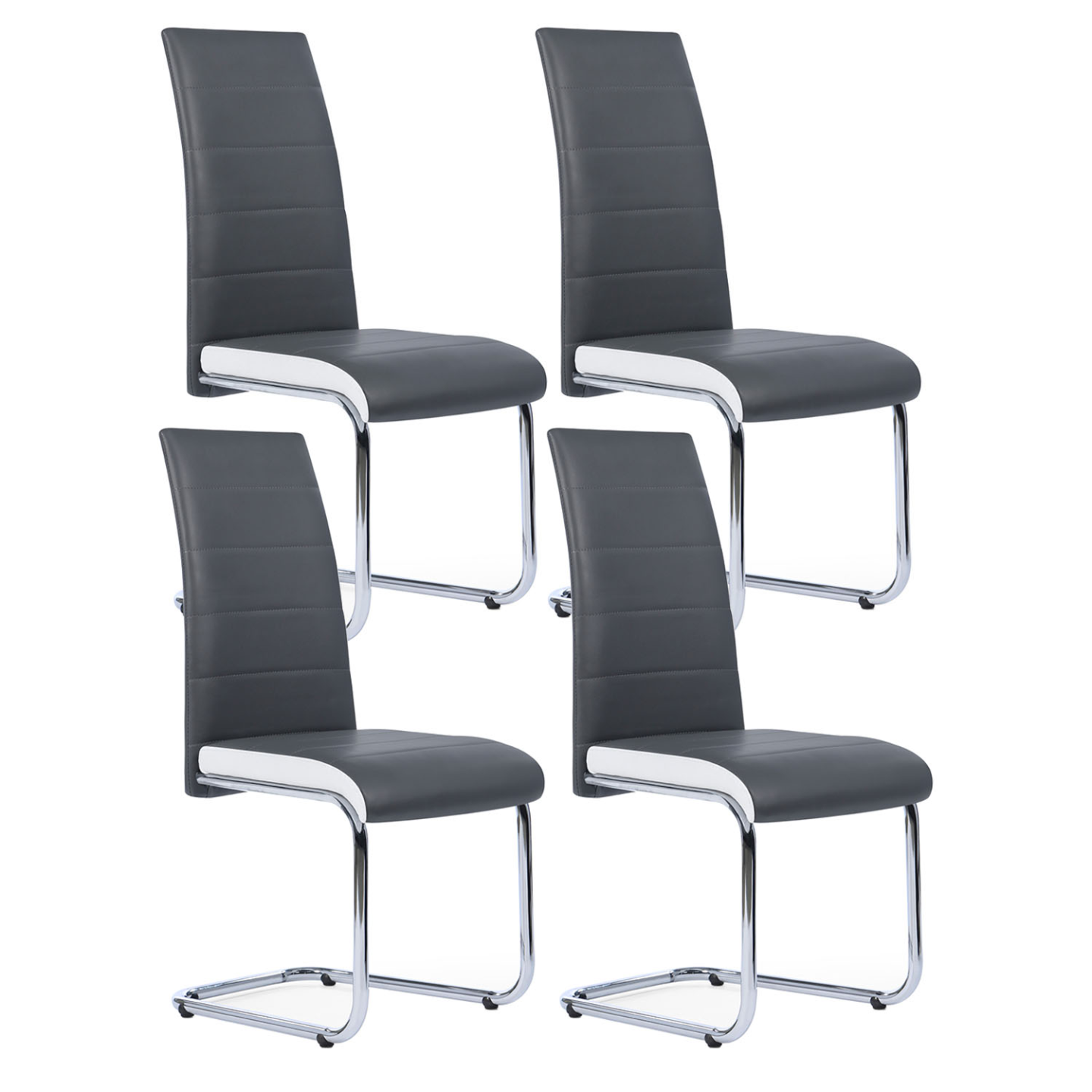 Invitez le design contemporain dans votre salle à manger avec ce lot de 4 chaises MIA grises liseré blanc. Ces 4 chaises aux lignes épurées s'adapteront parfaitement à votre séjour et lui apporteront une touche moderne et élégante !La structure de cette chaise et ses pieds en métal chromé vous offre