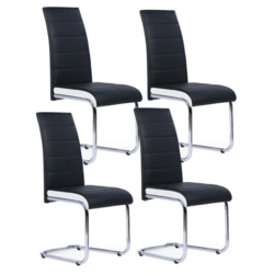 Invitez le design contemporain dans votre salle à manger avec ce lot de 4 chaises MIA noires liseré blanc. Ces 4 chaises aux lignes épurées s'adapteront parfaitement à votre séjour et lui apporteront une touche moderne et élégante !La structure de cette chaise et ses pieds en métal chromé vous offre