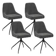 Lot de 4 chaises pivotantes THALYA en velours gris foncé avec accoudoirs