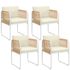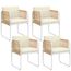 Lot de 4 chaises RIO structure métal blanc, cordage effet rotin clair et coussins beiges