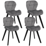 Lot de 4 chaises ROBINE en velours gris clair pieds noirs