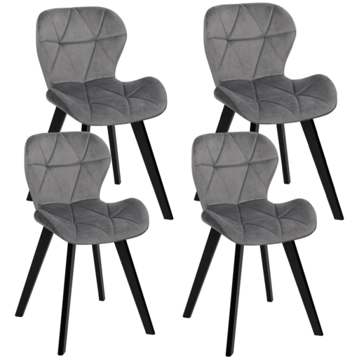 Profitez de ces chaises ROBINE en velours gris clair pour moderniser votre intérieur et apporter une touche vintage à votre décoration ! Aménagez un coin repas chic et tendance avec ce lot de 4 chaises.Leur forme arrondie et leur coloris sobre iront idéalement chez vous. Leurs pieds en bois noir apporteront un côté moderne et élégant à votre pièce !Fonctionnelles, ces chaises en velours s'installent dans la pièce que vous souhaitez. Avec leur dossier et leur assise ergonomique, elles pourront servir de chaises de bureau ou de réception dans votre salon.Dotées d'une assise large et confortable au revêtement en velours chaleureux et d'un dossier légèrement enveloppant, ces chaises très confortables vous permettront de passer d'agréables moments à table entouré de vos proches.Alors n'hésitez plus et craquez pour ce lot de 4 chaises velours au style design et à petit prix pour réaménager votre intérieur !Dimensions des chaises ROBINE en velours gris clairDimensions globales : Longueur 50 cm x largeur 47,5 cm x Hauteur 79 cmDimensions de l'assise : L. 48 x l. 38 x H. 47 cmMatériaux : structure de l'assise et pieds en bois + revêtement en veloursColoris : assise gris clair + pieds noirsVendues en lot de 4À monter soi-mêmeCe lot de 4 chaises ROBINE est également disponible dans d'autres coloris :- Lot de 4 chaises ROBINE en velours bleu- Lot de 4 chaises ROBINE en velours gris foncé- Lot de 4 chaises ROBINE en velours mix color bleu, gris et jauneCe modèle de chaises existe également en tissu et en PU, à retrouver sur notre boutique en ligne.