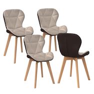 Lot de 4 chaises ROXANE bi-matière en tissu et PU marron et taupe pour salle à manger
