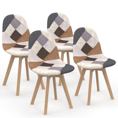 Lot de 4 chaises scandinaves SARA motifs patchworks marron